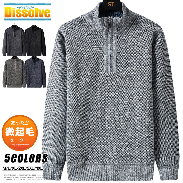 하프 지퍼 스웨터 풀오버 남성용 골프웨어 솔리드 컬러 긴소매 니트 슬림 약간 브러시드 니트 스웨터 캐주얼 비즈니스 니트 상의, 가을/겨울 따뜻한