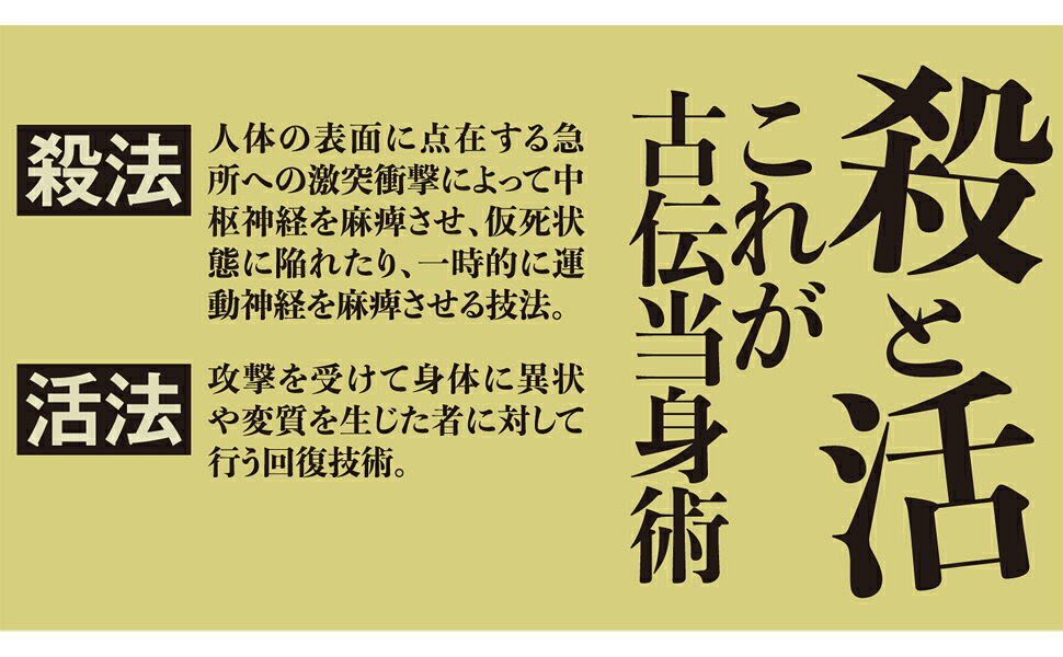 살법…인체의 표면에 점재하는 급소에의 격돌 충격에 의해 중추 신경을 마비시켜, 가사 상태에 빠지거나, 일시적으로 운동 신경을 마비시키는 기법