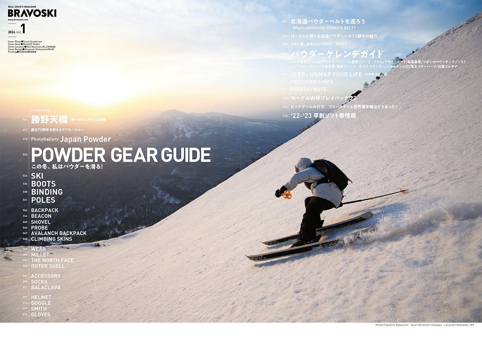 이 겨울, 나는 파우더를 미끄러진다! 2024 시즌을 즐겁게 미끄러지기 위해 필요한 정보가 가득. 스키와 부츠는 물론, 웨어에서 양말까지. 신설 활주를 원하는 최신 기어를 철저히 소개. 스포트 선택에 빠뜨릴 수 없는, 파우더 겔렌데 공략 가이드. 그 외, 읽어 응해 충분한 칼럼 등, 이번 시즌도 충실한 내용으로 전달합니다.