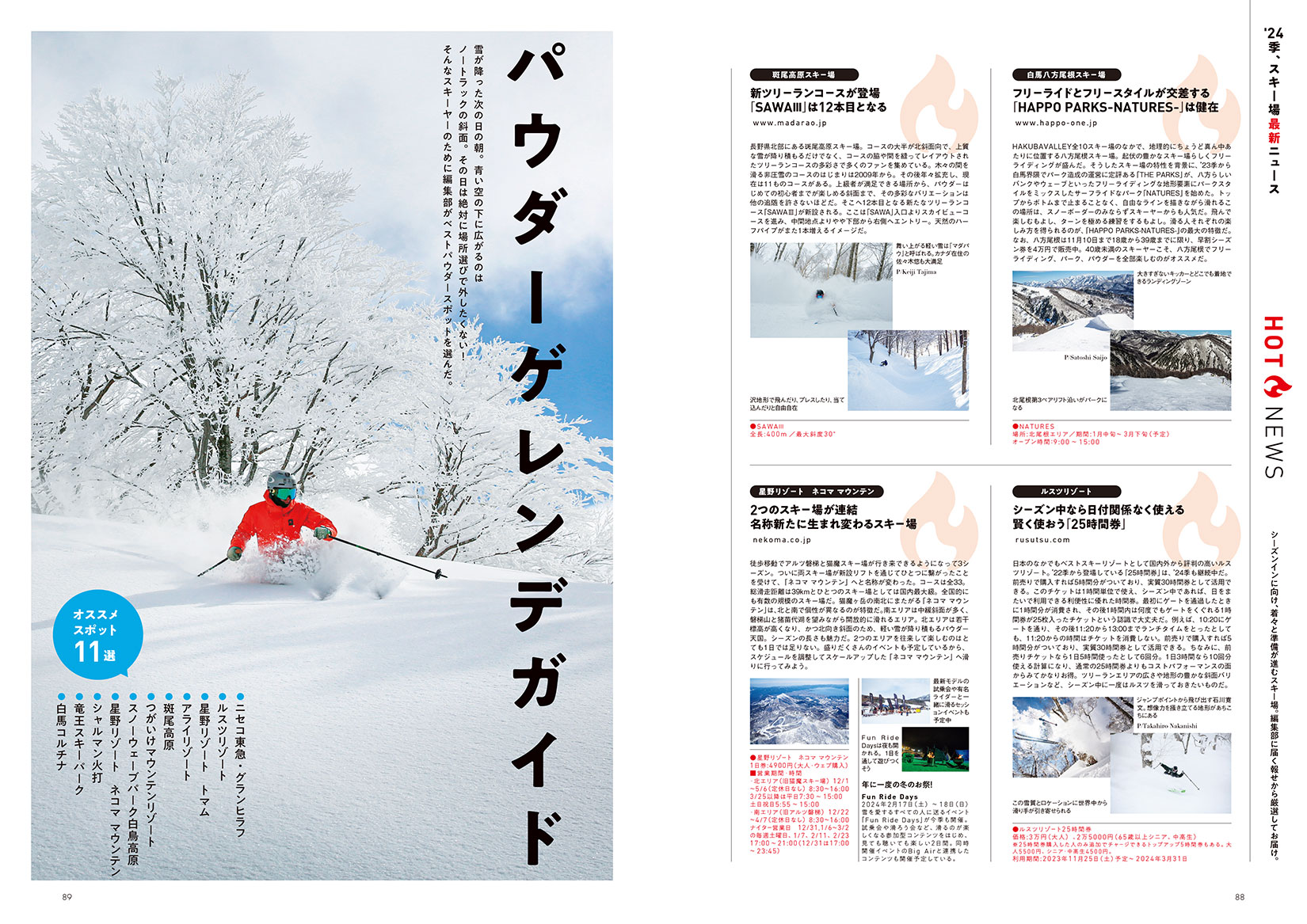 스포트 선택에 빠뜨릴 수 없는, 파우더 겔렌데 공략 가이드. 그 외, 읽기 충분 충분한 칼럼 등, 이번 시즌도 충실한 내용으로 전달합니다.