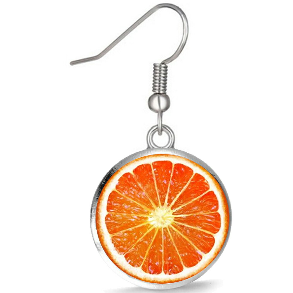 [패션 귀걸이 20G] 오렌지 스테인리스 스틸 귀걸이 1개 세일 싱글 이어 서지컬 스테인리스 스틸 316L 20 게이지 남성용 여성용 진짜 재미있는 남자친구 여자친구 선물 라운드 라운드 실버 실버 후크 귀걸이 음식 샘플 과일 과일 케다모노 과일